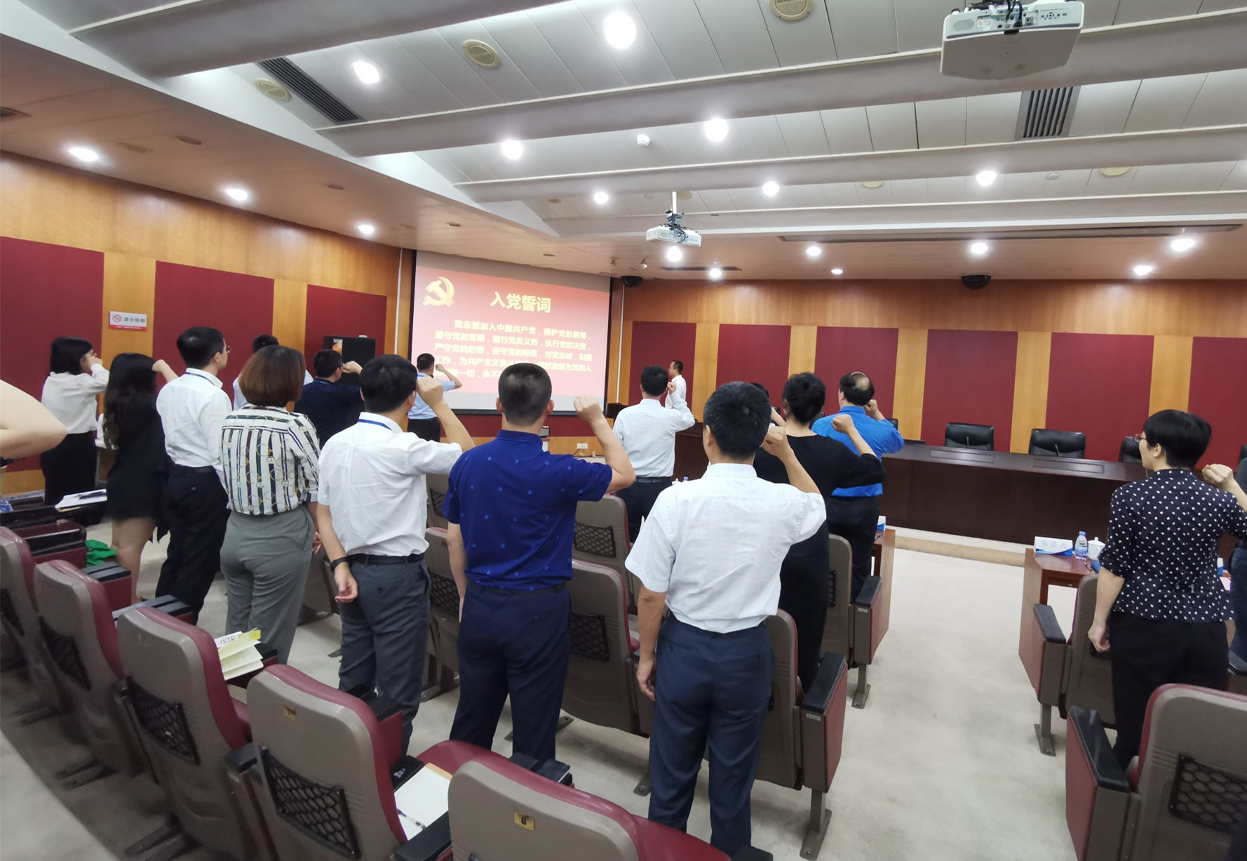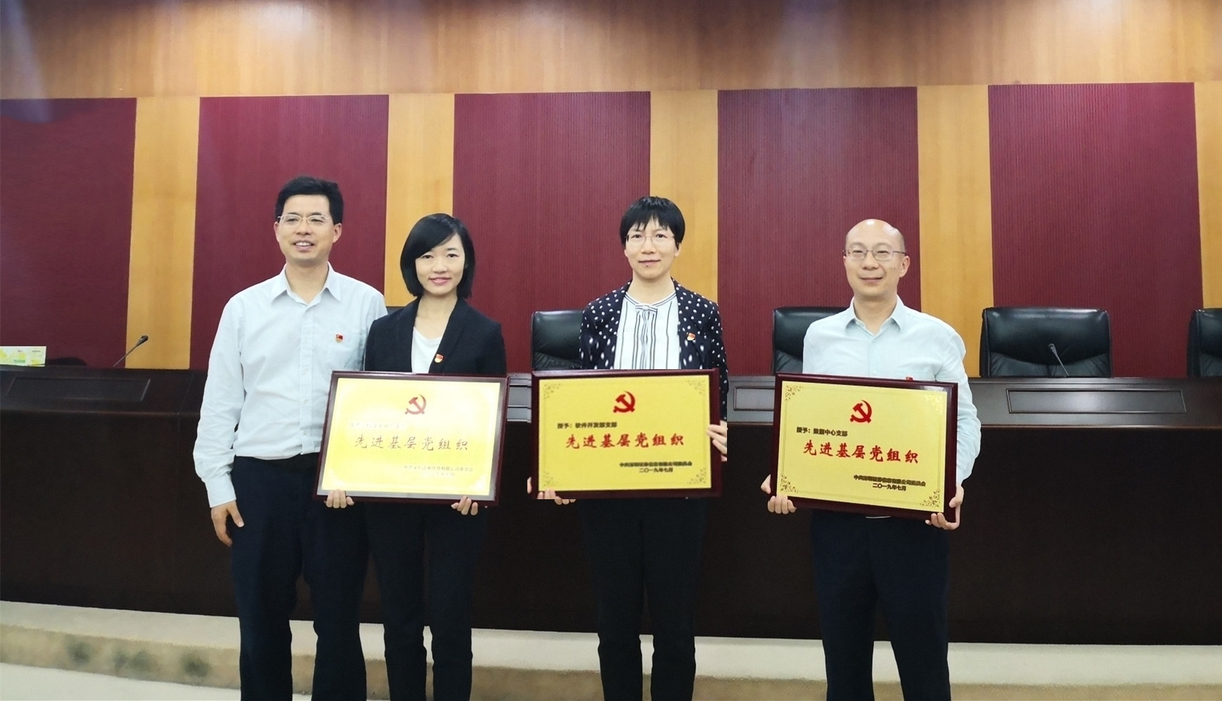2019年8月26日,公司召开庆祝中国共产党成立98周年大会。会议组织全体党员集体重温入党誓词,表彰“两优一先”先进集体和个人,公司党委书记、董事长王冰结合主题教育学习情况,就如何深入学习贯彻习近平新时代中国特色社会主义思想和党的十九大精神,如何深入领会习近平总书记关于资本市场重要指示批示精神,如何更好地践行初心使命,推进公司业务高质量发展,为公司全体党员干部讲授专题党课。公司全体党员及副总监以上领导干部参加会议。